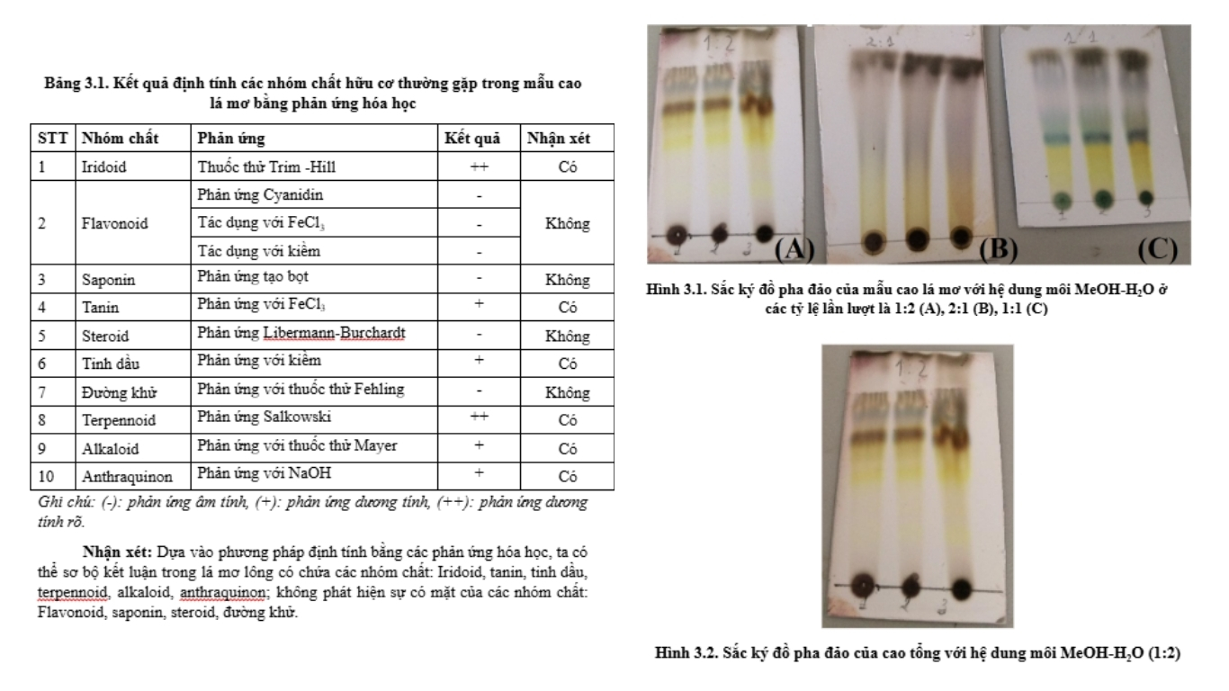 - Định lượng: Lần đầu tiên xác định được hàm lượng iridoid toàn phần trong cao lá mơ (khoảng 2,5%), tạo cơ sở cho việc tiêu chuẩn hóa dược liệu sau này.